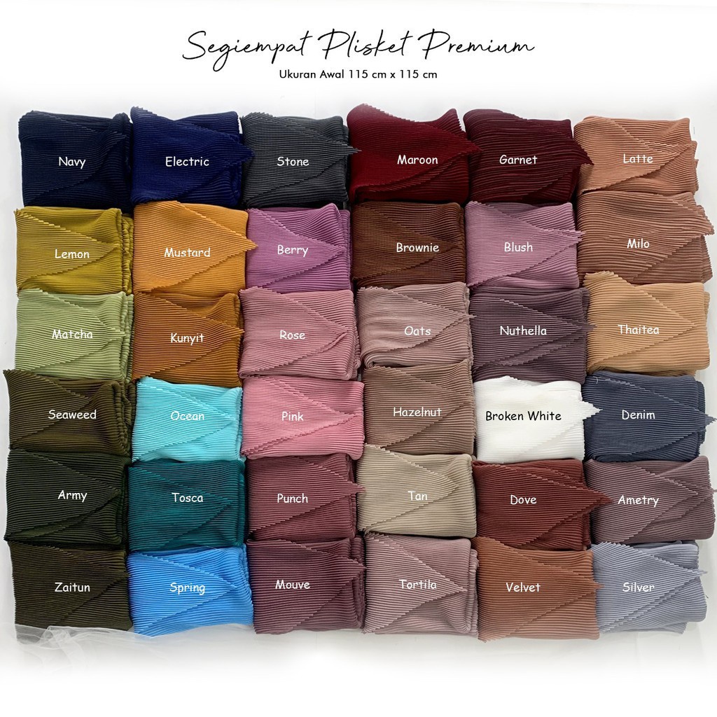 Harga bella square plisket lidi full / jilbab segi empat plisket full pollycotton