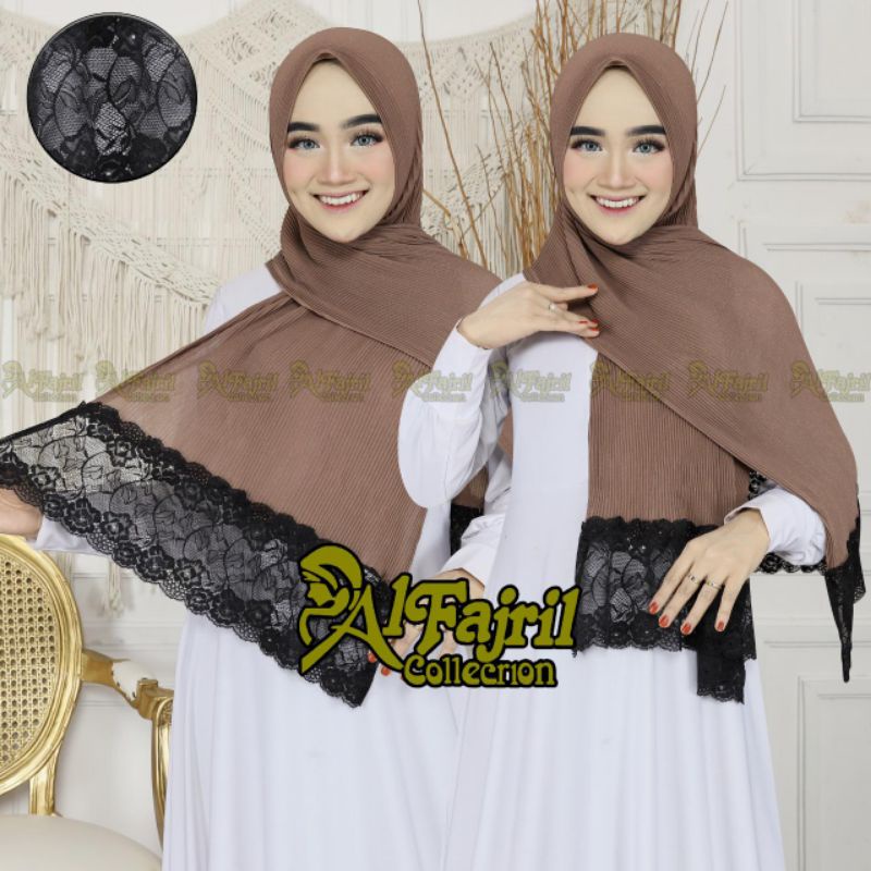 Jilbab Pashmina Plisket Renda Tanpa Garis Tengah Original AlFajril
