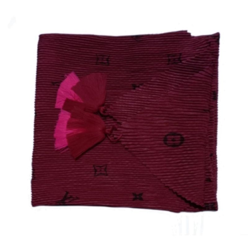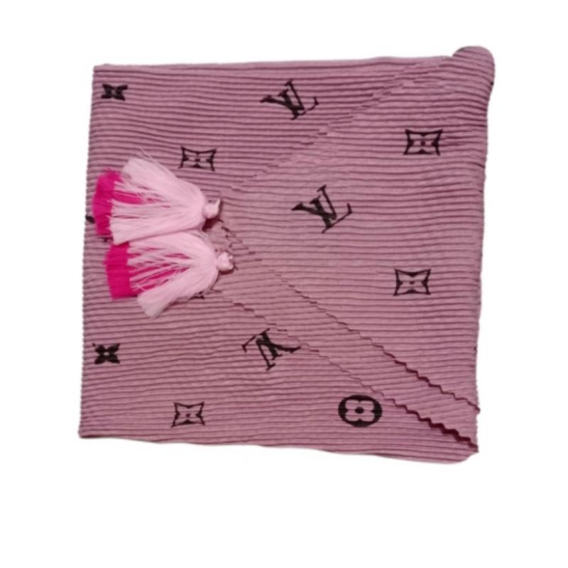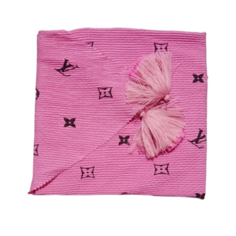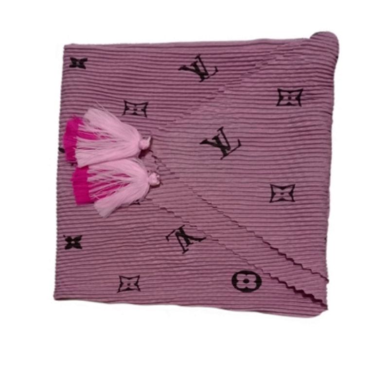 Harga Hijab SEGI EMPAT PLISKET JAMBUL/POM POM MOTIF LV TEPI LACER CUT kerudung BRANDED LV