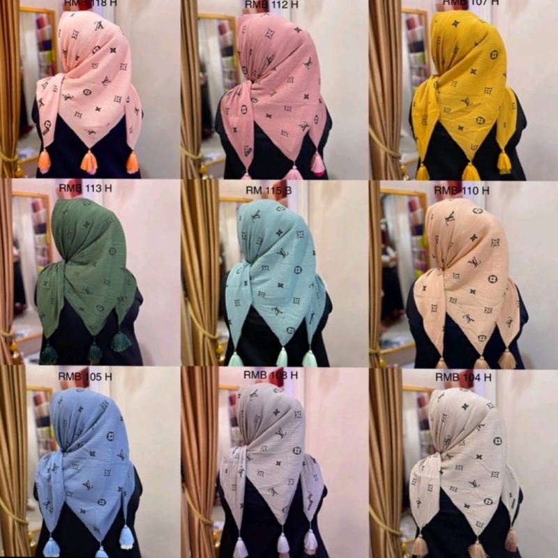 Kelebihan - Kelebihan membeli Hijab SEGI EMPAT PLISKET JAMBUL/POM POM MOTIF LV TEPI LACER CUT kerudung BRANDED LV di Toko ini
