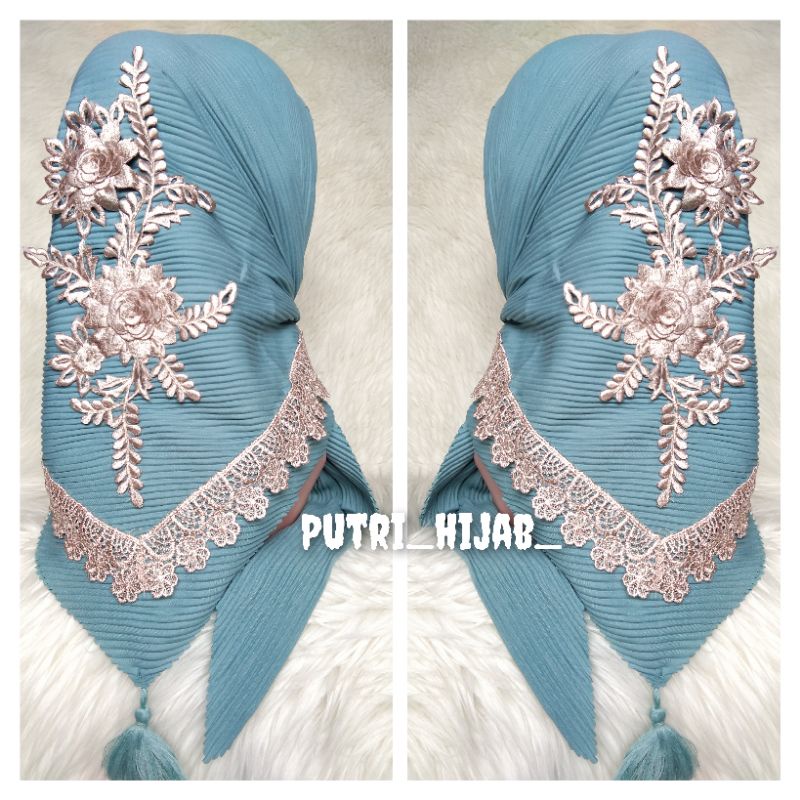 Kerudung segiempat plisket renda / jilbab segiempat motif / hijab kekinian
