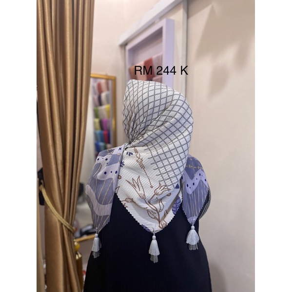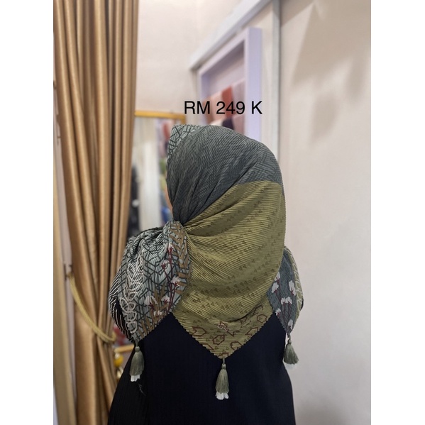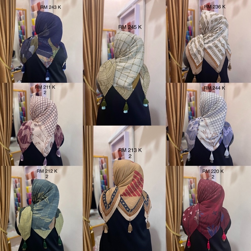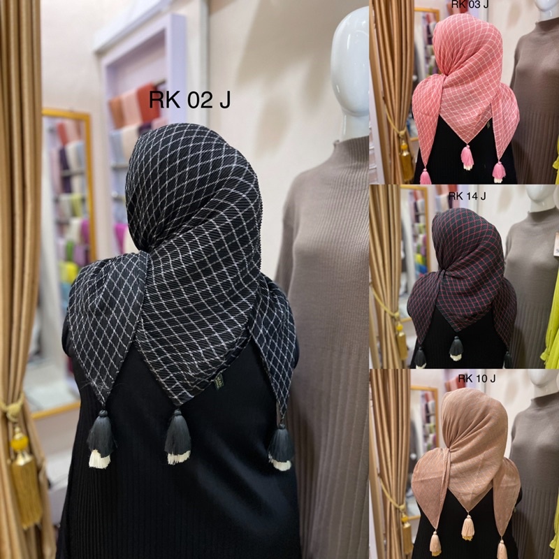 Harga Hijab Segiempat Plisket Motif Tassel Mute - Hijab 2 in 1 Segiempat Segitiga - Hijab Plisket Tassel Mute