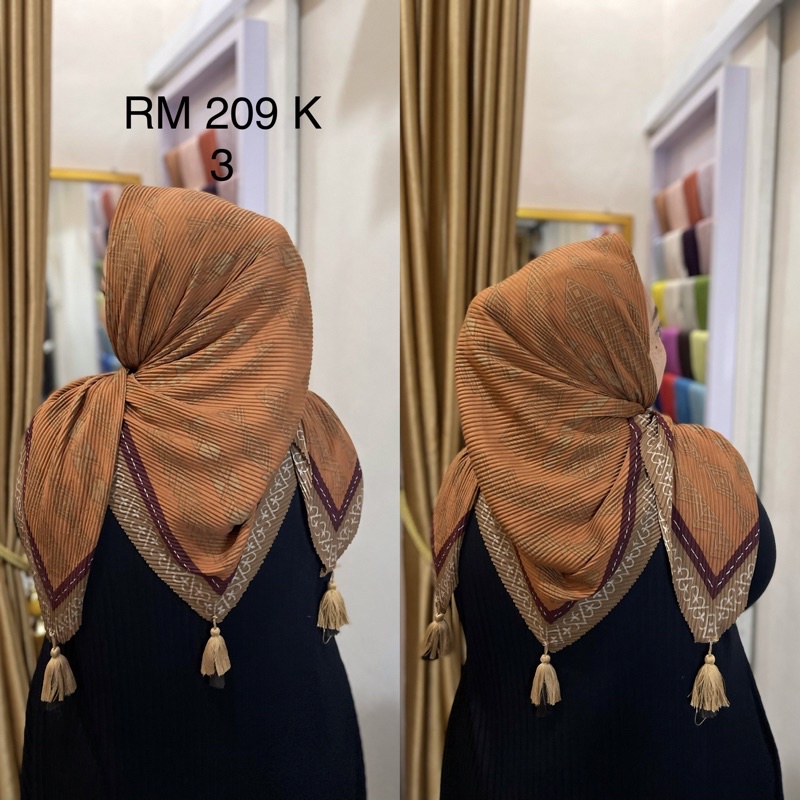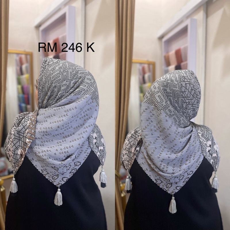 Hijab Plisket Segi 4 Motif Jambul / Segi Empat Motif Voal