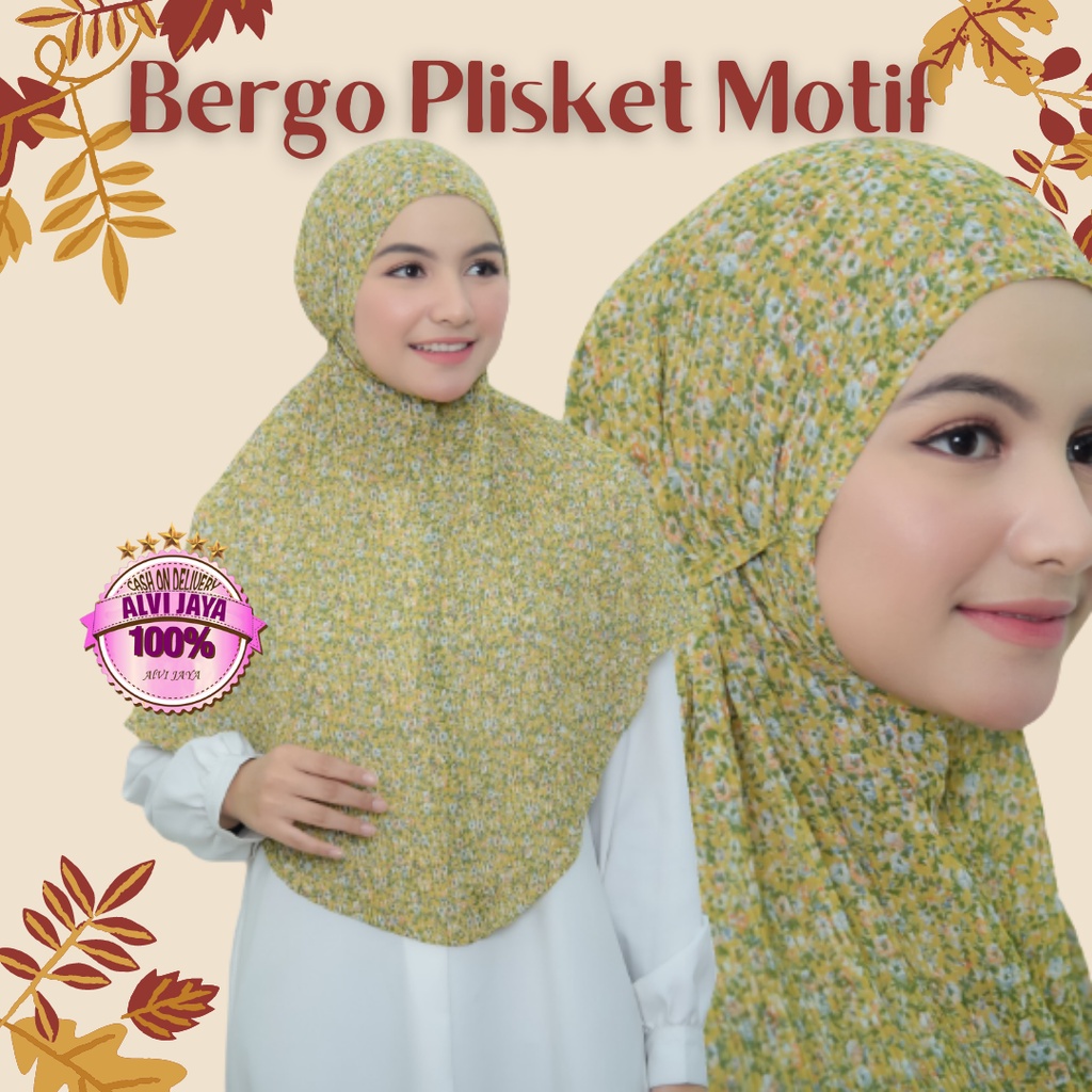 Harga JILBAB BERGO PLISKET MOTIF / TERBARU BERGO PLISKET MOTIF / KERUDUNG INSTAN BERGO PLISKET MOTIF