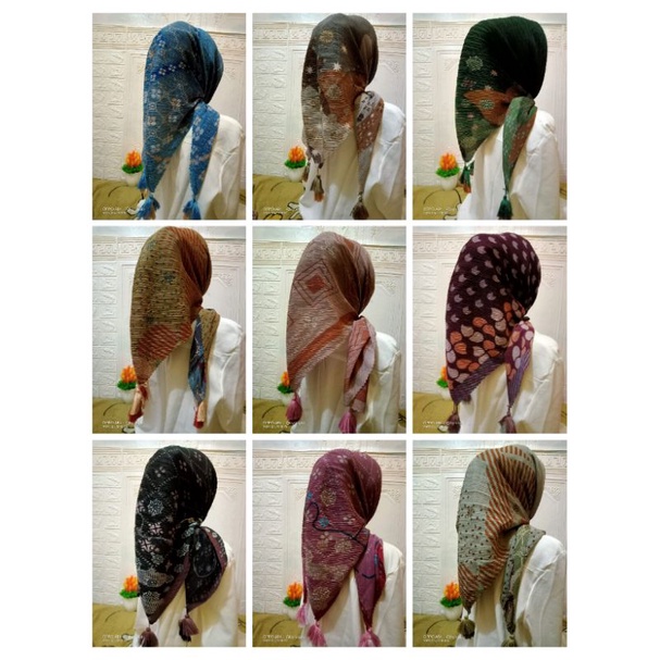 HIJAB/KERUDUNG SEGI EMPAT PLISKET MOTIF POM POM/JAMBUL/RANDOM