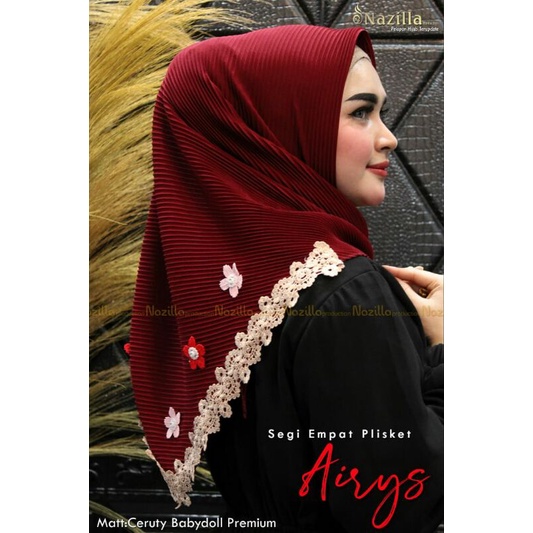 Jilbab Segi Empat Renda Airys Plisket Ori Nazilla
