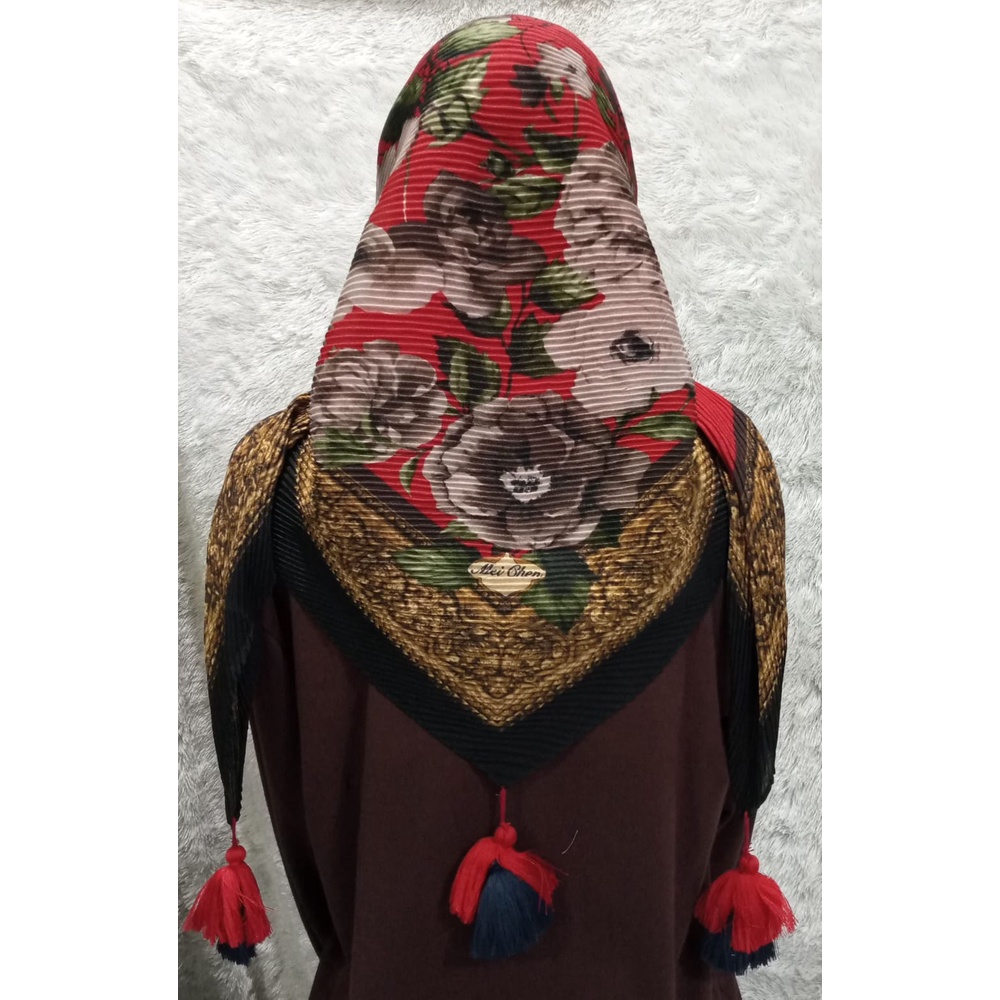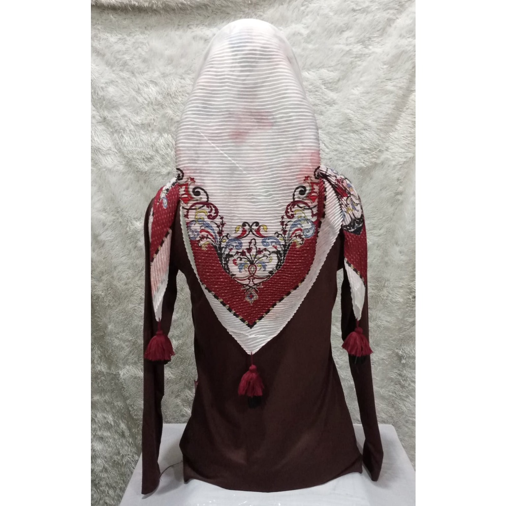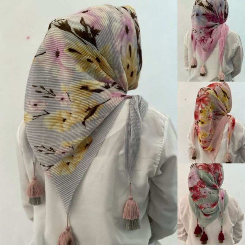 Harga Jilbab Plisket Segi 4 Motif / Se3gi 4 Pompom / Segi 4 Import/Plisket Jambul Murah