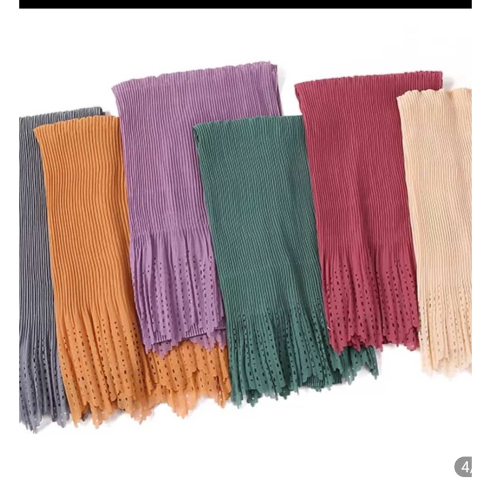 Harga Pashmina Plisket Duyung Laser Cut PREMIUM | Plisket Lidi Tanpa Garis Tengah | Pasmina Model Terbaru