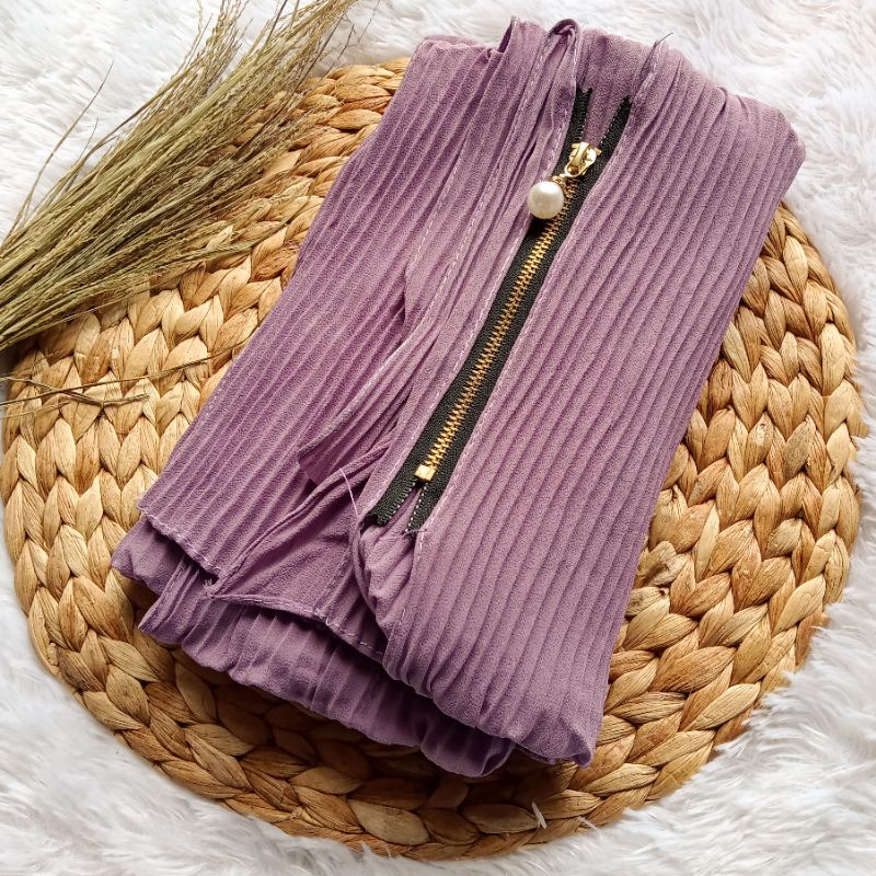 Maula Hijab - Kerudung Pashmina Plisket Lidi Full Tanpa Garis Tengah Jilbab Pasmina Ceruty Babydoll Premium