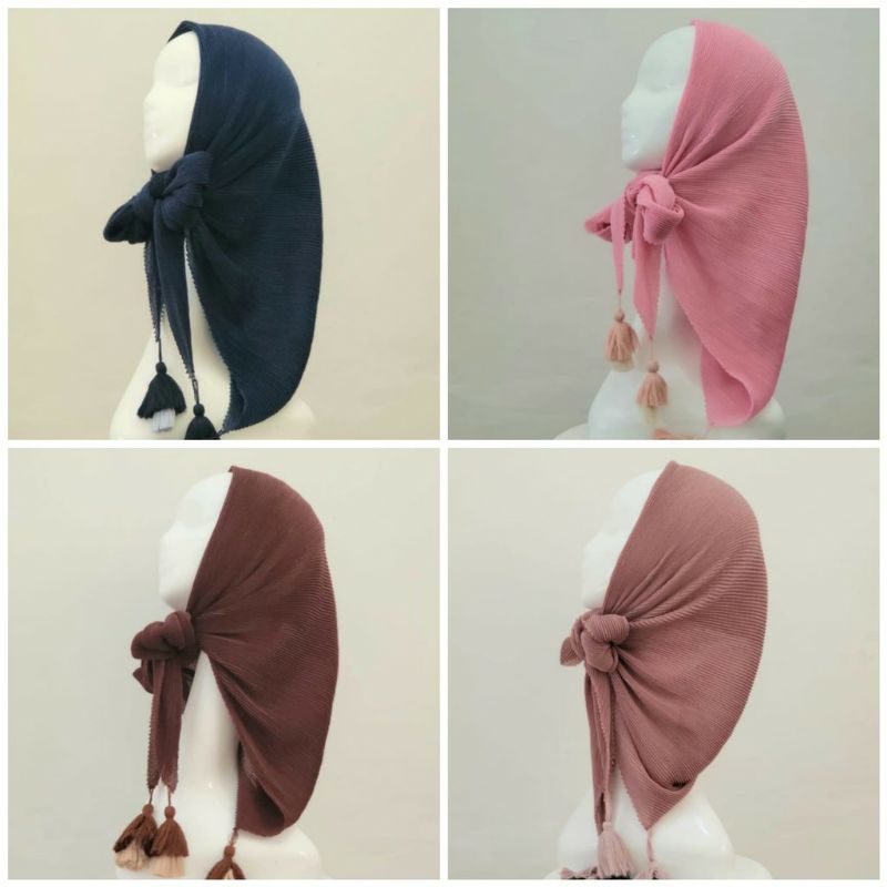 Jilbab Segiempat Pleated Jambul Hijab Jilbab Plisket Tassel