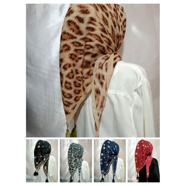 HIJAB/KERUDUNG SEGIEMPAT PLISKET VOAL MOTIF POM POM/DENAY