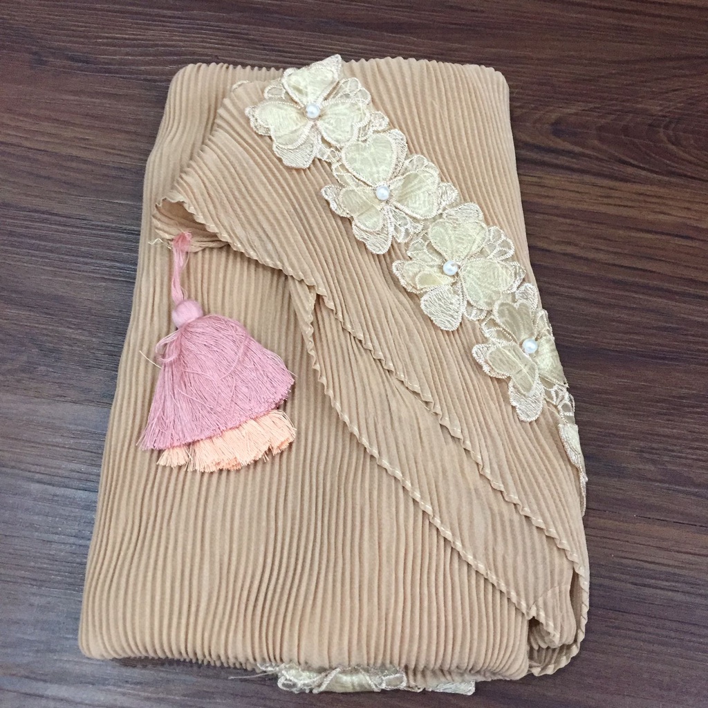 Hijab Plisket Segi 4 Motif Jambul / Segi Empat Motof Voal PomPom/Segi Empat Plisket Murah