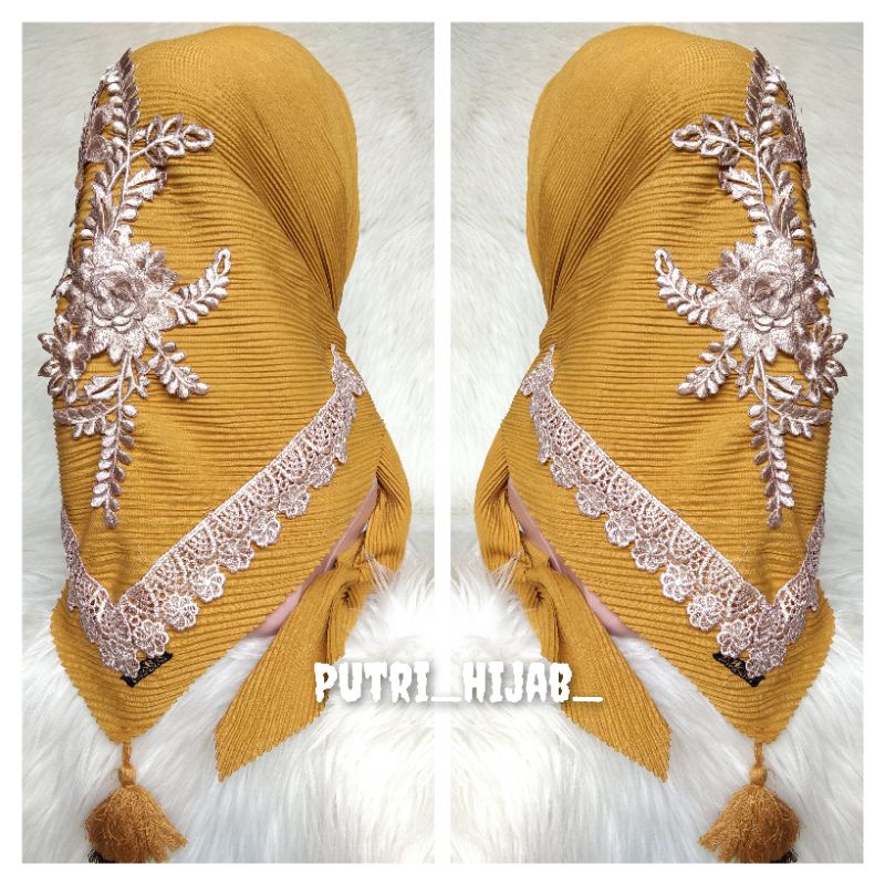 Alasan kenapa harus beli Kerudung segiempat plisket renda / jilbab segiempat motif / hijab kekinian sekarang