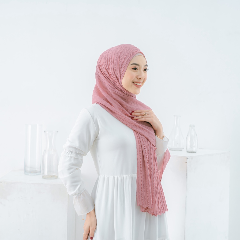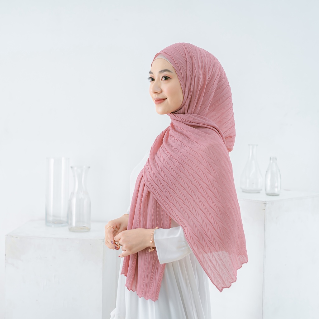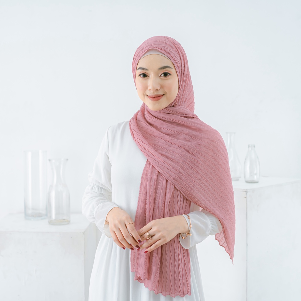 Harga Maula Hijab - Kerudung Pashmina Plisket Padi Full Tanpa Garis Tengah Jilbab Pasmina Ceruty Babydoll Premium