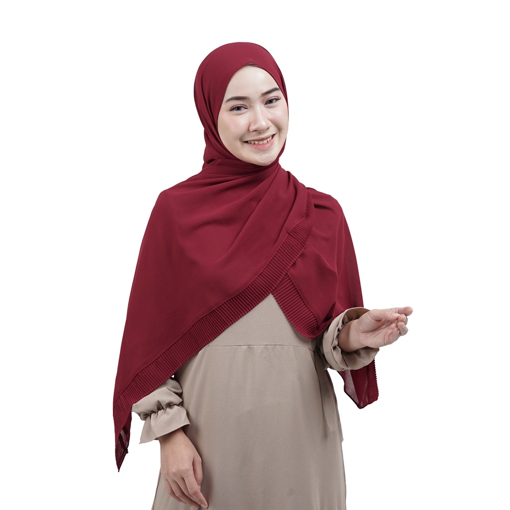 Jilbab Segi Empat Plisket Motif Kinara Ori Vallery