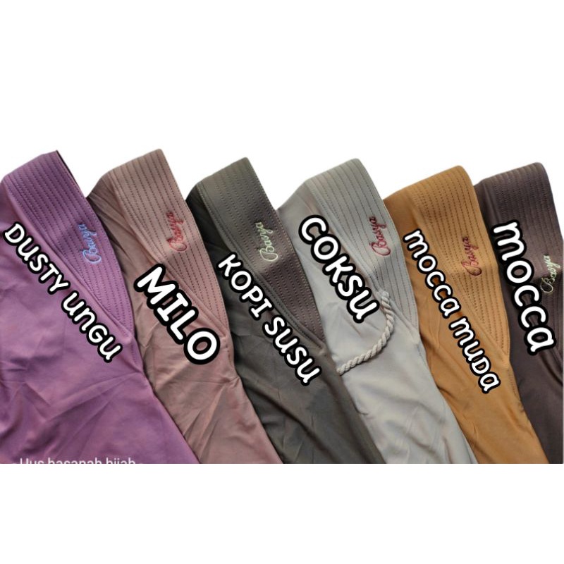 Produk ini memiliki 20 Variasi Warna yaitu : Dusty Ungu,Coksu,Wardah,Hitam,Maroon,Abu Muda,Dusty Pink,Navy,Toska,Lemon,Hijau Botol,Kunyit,Kopi Susu,Mocca,Army,Telur Asin,Abu Tua,Mocca Muda,Milo,Coklat tembaga,