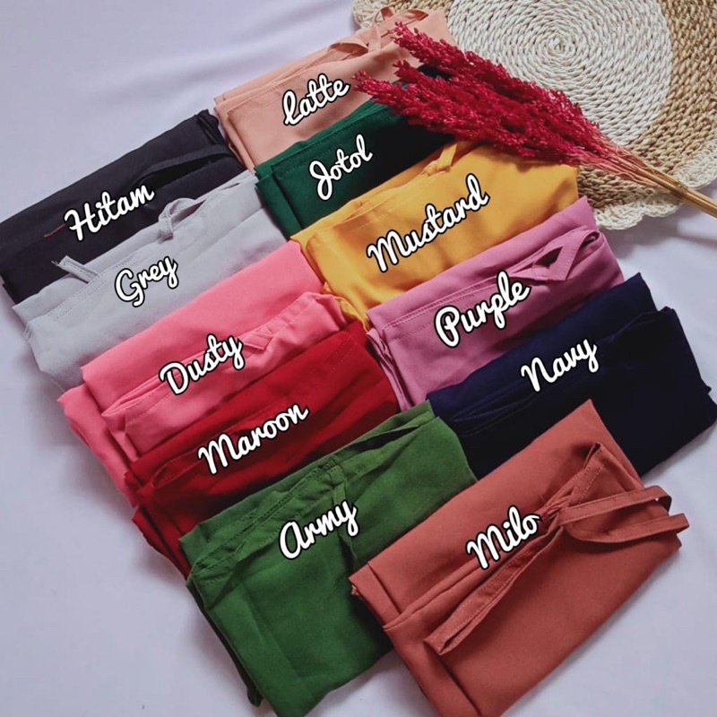 Produk ini memiliki 11 Variasi Warna yaitu : MAROON,MOCCA,MUSTARD,CREAM,DUSTY-PINK,NAVY,HITAM,SILVER,CIPUT POLOS,ARMY,LAVENDER,