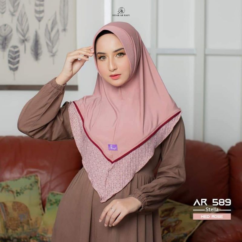 Harga TERLARIS ! Hijab Jilbab Bergo Arrafi Ar 589 | Kerudung Polos Kombi Plisket Polka | Hijab Daily Adem Nyaman Ped Antem Terlaris 2022 | ORI ARRAFI