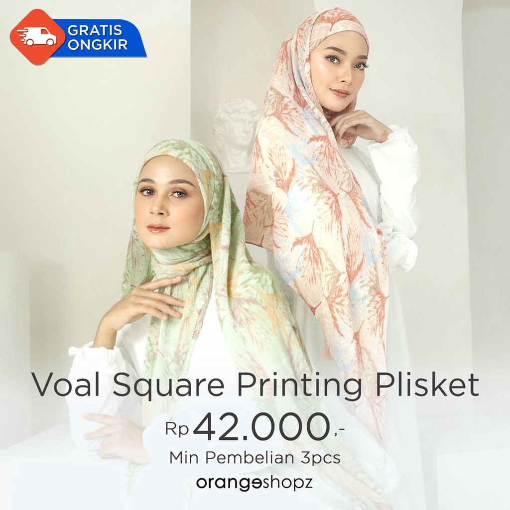 Hijab Voal Square Printing Plisket Exclusive Pleated Scarf Motif Premium 115x115 By Orangeshopz Official Shop