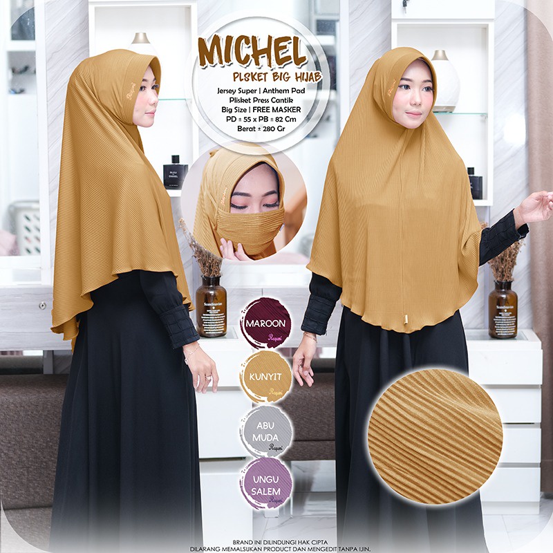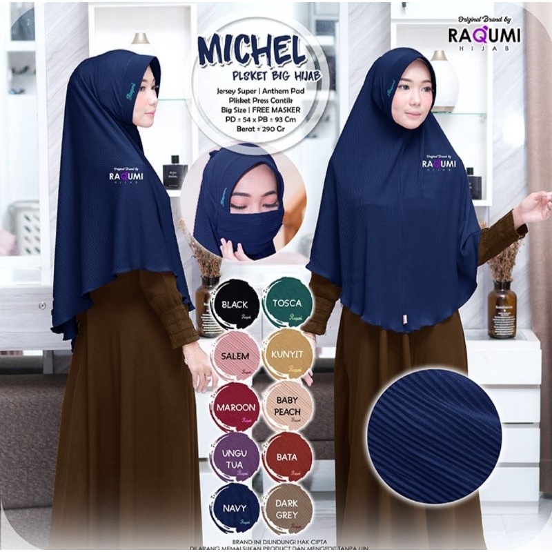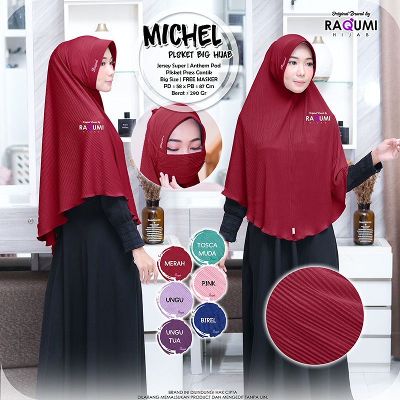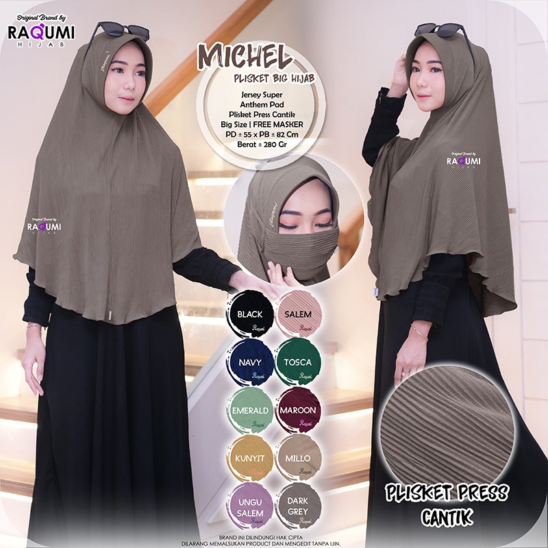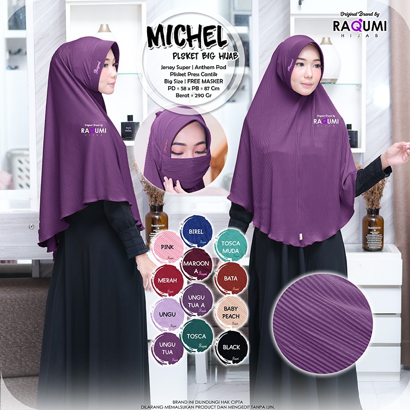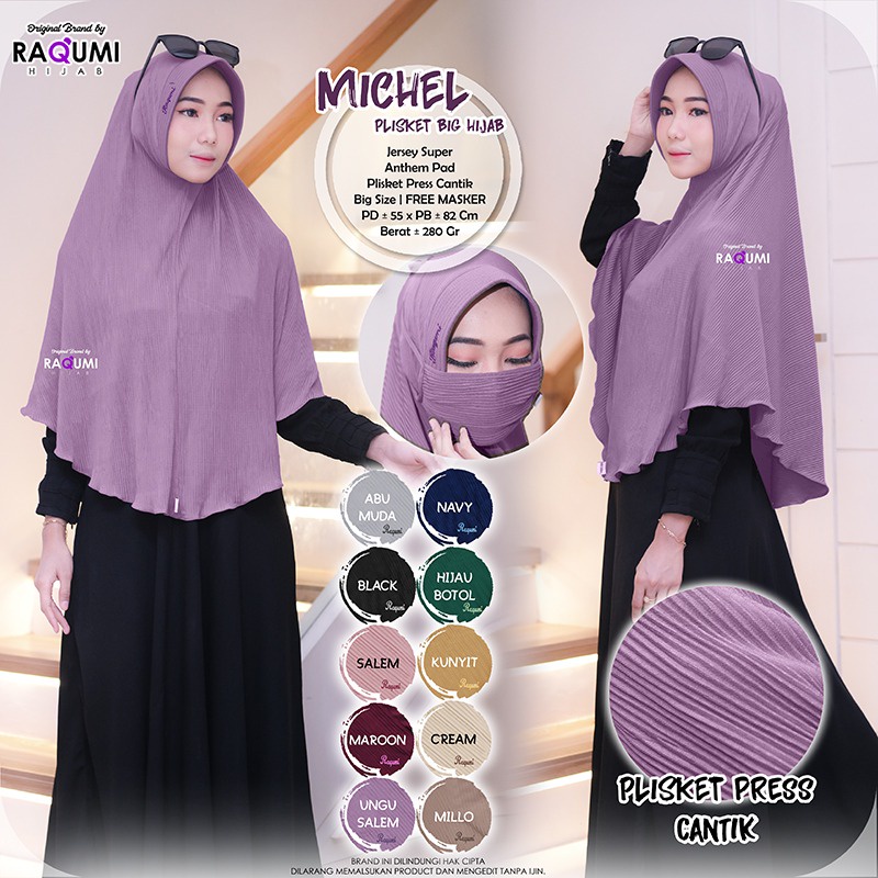 Harga Michel Plisket Hijab Original Raqumi Hijab Jersey Super Anthem Pad Hijab Instan Plisket Raqumi Hijab Instan Raqumi Michel Raqumi